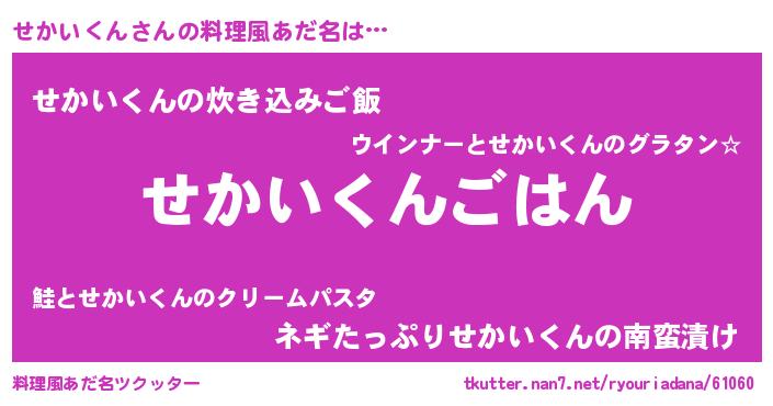 | 男性向けラノベタイトル風あだ名 | 『セカイクンスレイヤー』 |