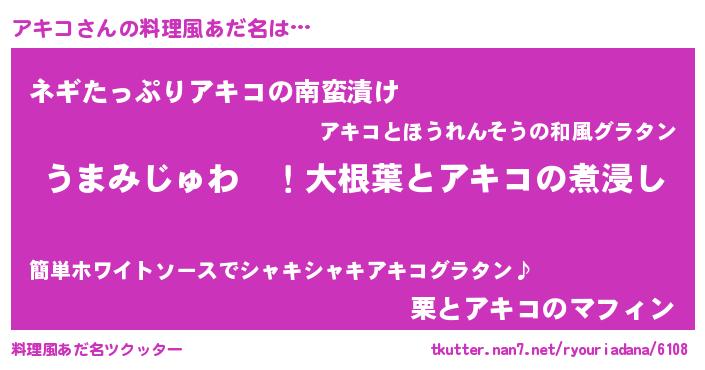 | 女子向けラノベタイトル風あだ名 | 『アキコの婚約者』『アキコ様がみてる』 |