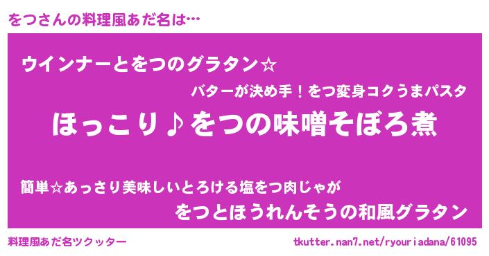 | 男性向けラノベタイトル風あだ名 | 『をつの憂鬱』『転生したらをつだった件』 |