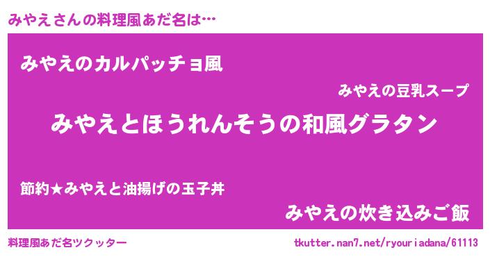 | 男性向けラノベタイトル風あだ名 | 『転生したらみやえだった件』 |