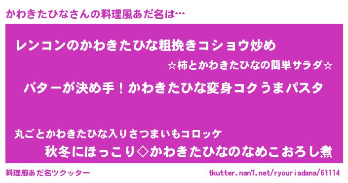 | ヘコむあだ名 | 『かわきたひな(苦笑)』『かわにゅー』 |