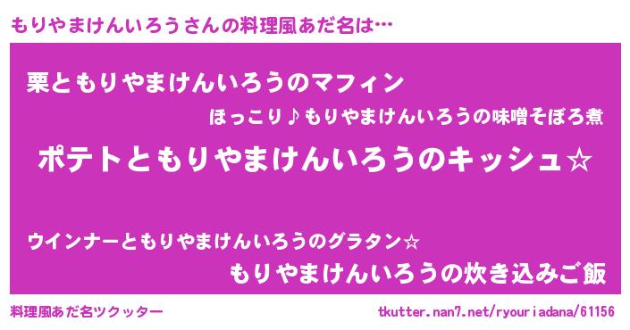 | 男性向けラノベタイトル風あだ名 | 『もりやまけんいろうの嫁は女の子じゃないと思った?』 |