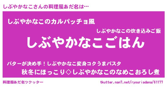 | 意味不明あだ名 | 『しいたけ科しぶやかなこ属』 |