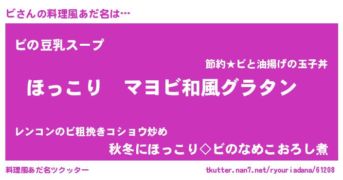 | 意味不明あだ名 | 『住所不定無職ビ(53歳)』『ペロリンビ』 |
