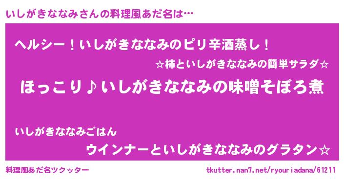 | 胡散臭い通販商品みたいなあだ名 | 『必ず成功するブレスレット…その名も「いしがきななみ」』 |
