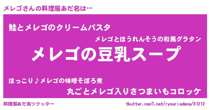 | 胡散臭い通販商品みたいなあだ名 | 『信頼と実績のサプリメント…その名も「メレゴ」』 |