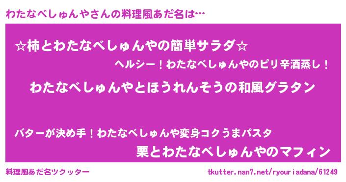 | 意味不明あだ名 | 『ニラ科わたなべしゅんや属』 |