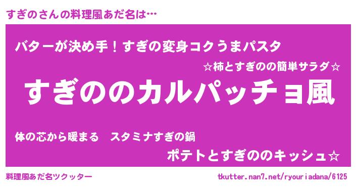 | ヘコむあだ名 | 『すぎっ子』『なまこ酢』『すぎにー』 |