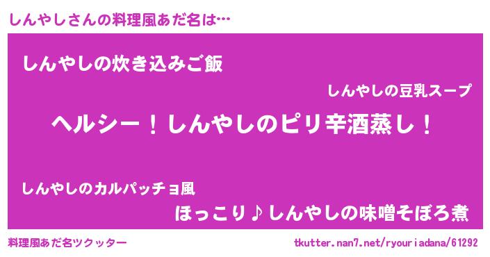| 男性向けラノベタイトル風あだ名 | 『Re:しんやしから始める異世界生活』 |