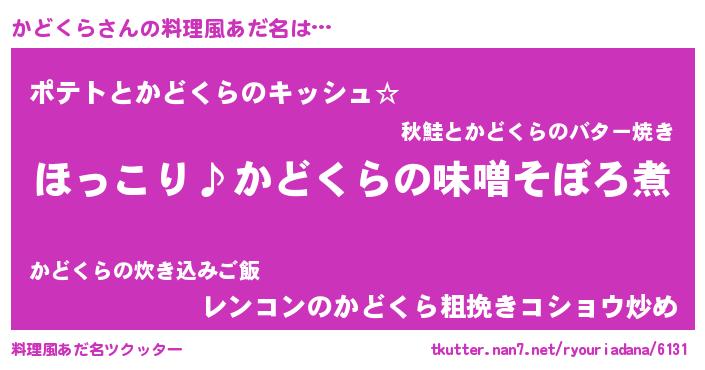 | 男性向けラノベタイトル風あだ名 | 『かどくらの憂鬱』 |