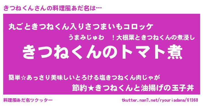 | 女子向けラノベタイトル風あだ名 | 『きつねくん夫妻のなれそめ』 |