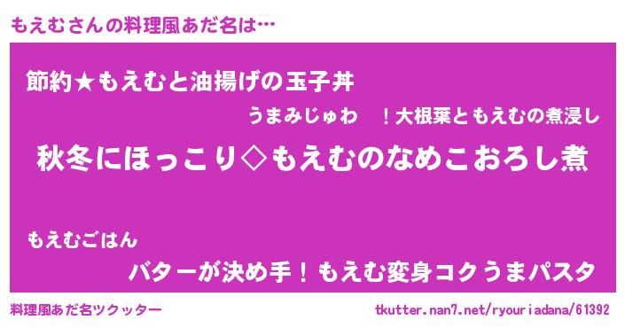男性向けラノベタイトル風あだ名 | 『もえむに滅ぼされるだけの簡単なお仕事です』 |
