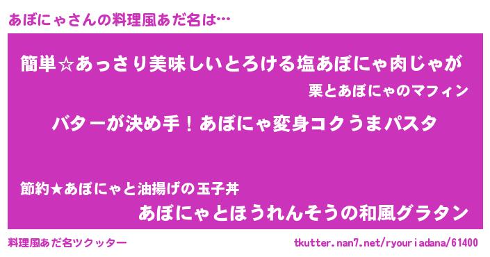 | 欧米人風あだ名 | 『ダニエルあぼにゃ』『マイケルあぼにゃ』 |