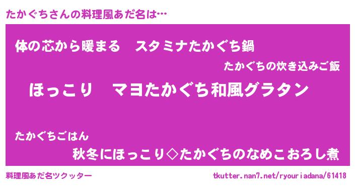 | ヒーロー風カッコイイあだ名 | 『仮面タカダー』『ウルトラたかぐちマン』 |