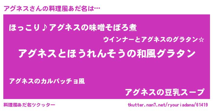 | 欧米人風あだ名 | 『トリンドルアグネス』 |