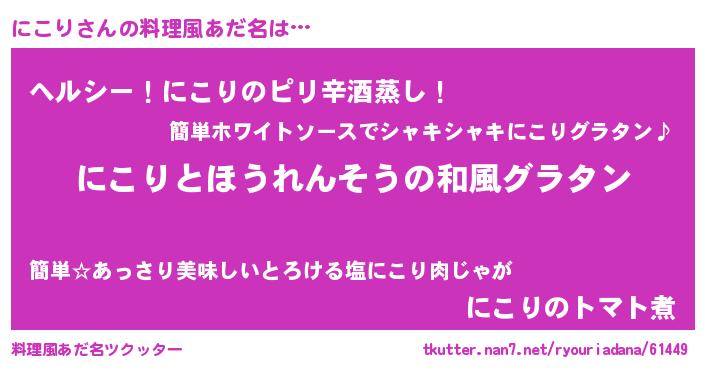 | ヘコむあだ名 | 『にこっ子』『にこり(笑)』 |