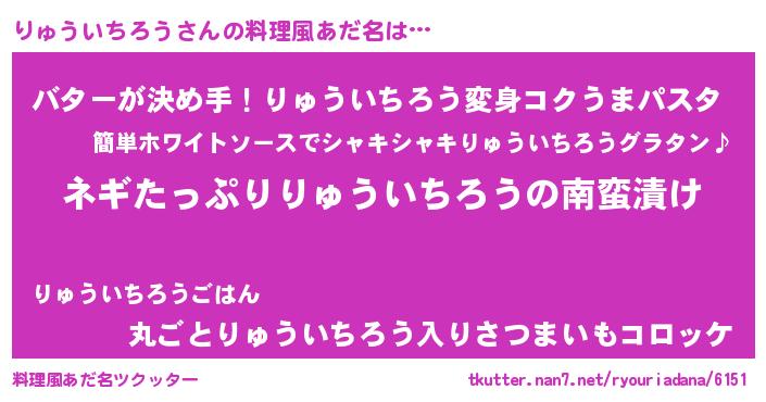 | 恥ずかしいあだ名 | 『プリティーりゅういちろう』『りゅちん』 |