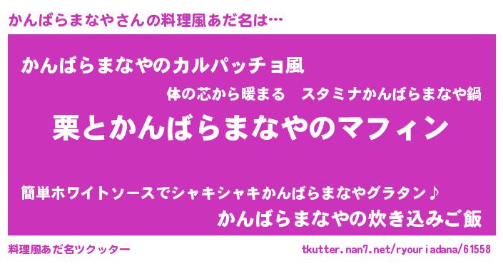 | 意味不明あだ名 | 『住所不定無職かんばらまなや(62歳)』 |