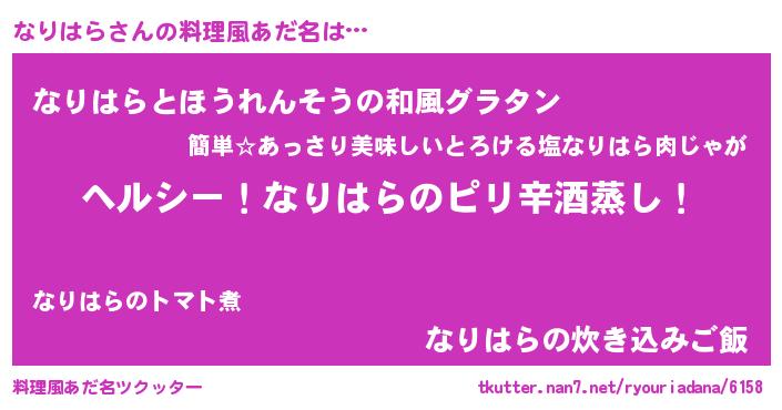 | 胡散臭い通販商品みたいなあだ名 | 『芸能人もオススメする高麗人参…その名も「なりはら」』 |
