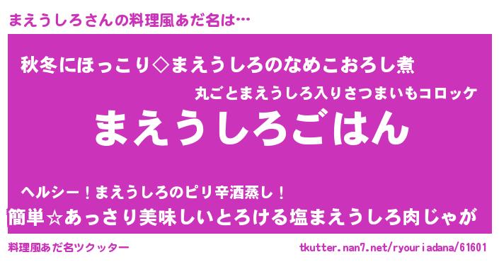 | 男性向けラノベタイトル風あだ名 | 『マエウシロスレイヤー』 |