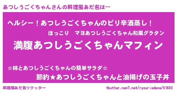 | ヒーロー風カッコイイあだ名 | 『ネオアツシウゴクチャン』 |