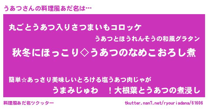 | 意味不明あだ名 | 『住所不定無職うあつ(91歳)』 |
