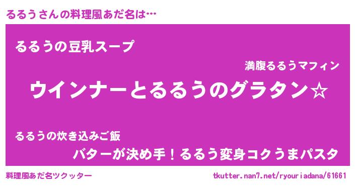 | ヒーロー風カッコイイあだ名 | 『ウルトラるるうマン』『黄金騎士ルル』 |