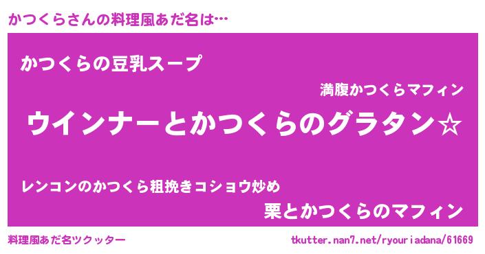 | ヒーロー風カッコイイあだ名 | 『ウルトラかつくらマン』『黄金騎士カツ』 |