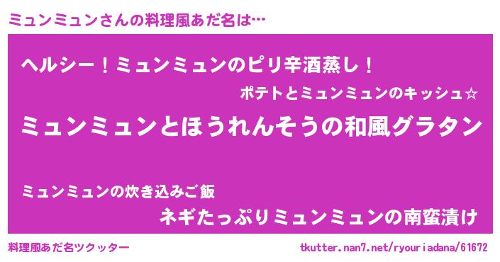 | ヘコむあだ名 | 『ミュにー』『ミュぷりん』 |