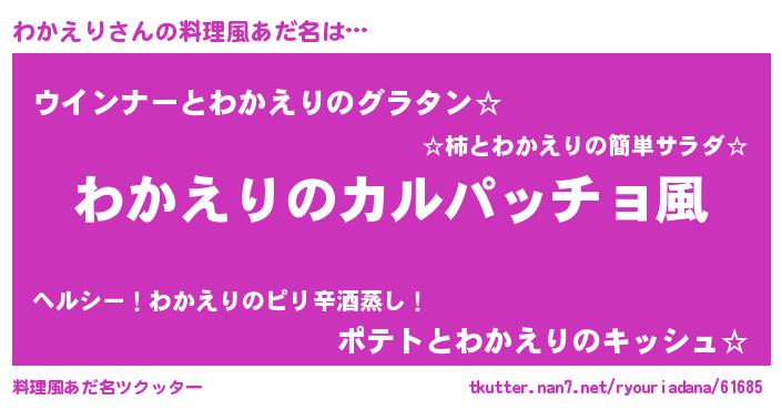 | 意味不明あだ名 | 『住所不定無職わかえり(56歳)』 |