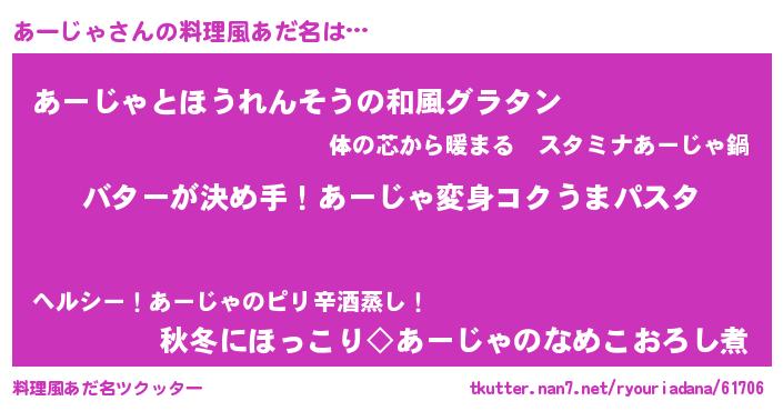 | 女子向けラノベタイトル風あだ名 | 『あーじゃ恋絵巻』『闇のあーじゃ』 |