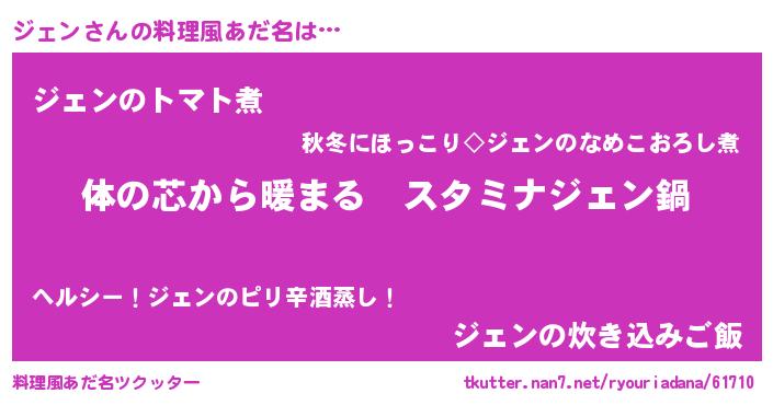 | 男性向けラノベタイトル風あだ名 | 『やはりジェンの青春ラブコメはまちがっている 』 |