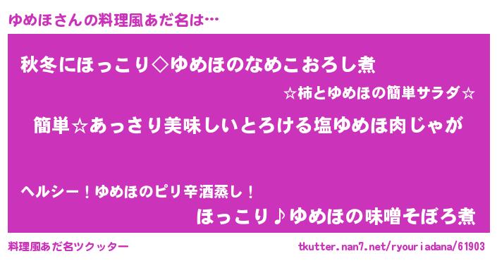 | ヘコむあだ名 | 『ゆめほ(爆)』『ゆめふぇ~』『牛乳』 |
