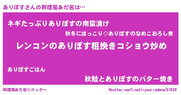 | 意味不明あだ名 | 『自称ありぽす』『ペロリンありぽす』 |