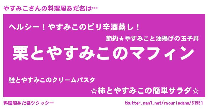 | 意味不明あだ名 | 『自称やすみこ』『ペロリンやすみこ』 |