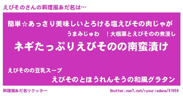 | 意味不明あだ名 | 『ペロリンえびその』『永久保存えびその』 |