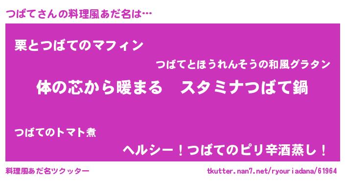 | 女子向けラノベタイトル風あだ名 | 『つばての雑貨屋さん』『闇のつばて』 |