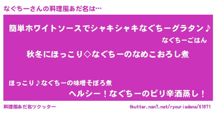 | ピコ太郎風あだ名 | 『ナグ五郎』『ナコ一郎』『ナナ太郎』 |