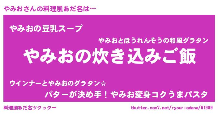 | ヘコむあだ名 | 『やみお』『牛乳』『やみお(震え声)』 |