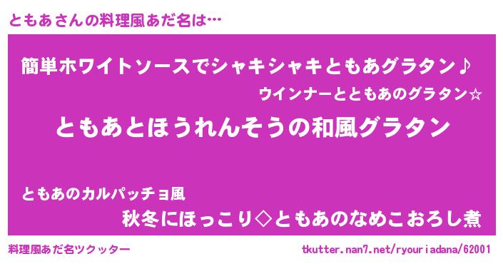 | 意味不明あだ名 | 『ニラ科ともあ属』『ともあフォーエバー』 |