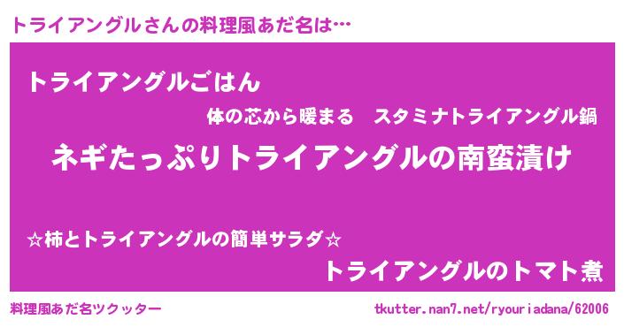 | 男性向けラノベタイトル風あだ名 | 『トライアングルアートオンライン』 |