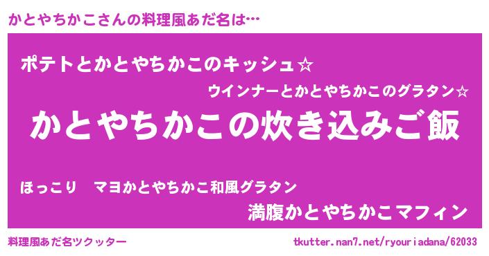 | ヒーロー風カッコイイあだ名 | 『炎刃騎士カト』『ネオカトヤチカコ』 |