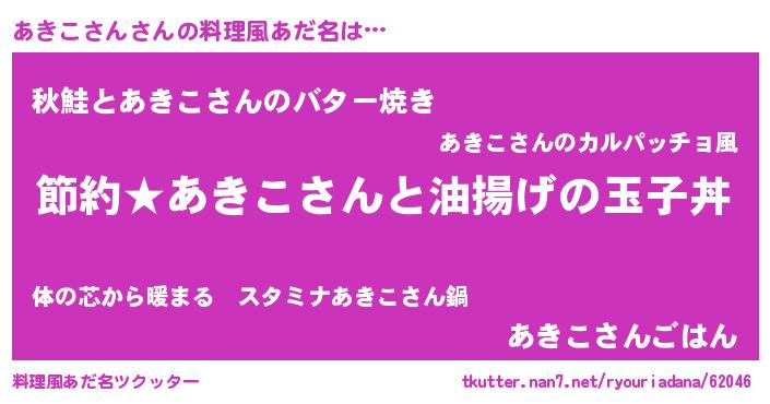 | 男性向けラノベタイトル風あだ名 | 『アキコサンアートオンライン』 |
