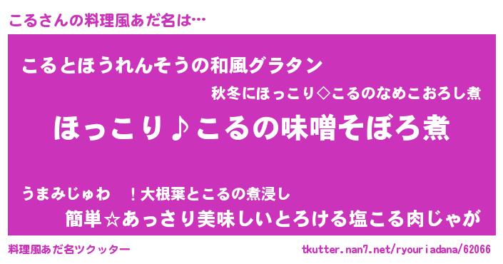 | 2回繰り返すあだ名 | 『こるこる』『わなわな』『ここるる』 |