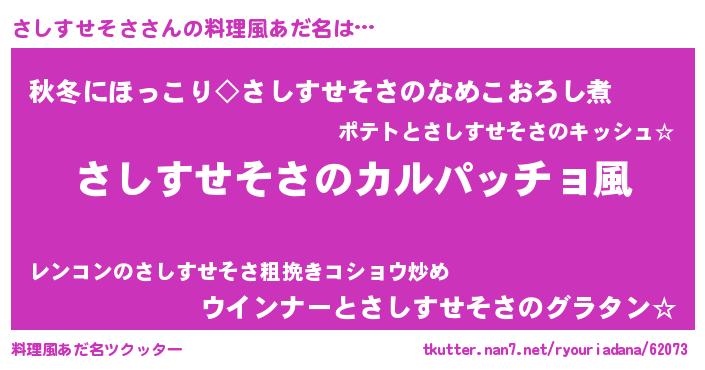 | 意味不明あだ名 | 『住所不定無職さしすせそさ(13歳)』 |