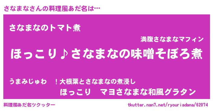 | 意味不明あだ名 | 『ペロリンさなまな』『永久保存さなまな』 |
