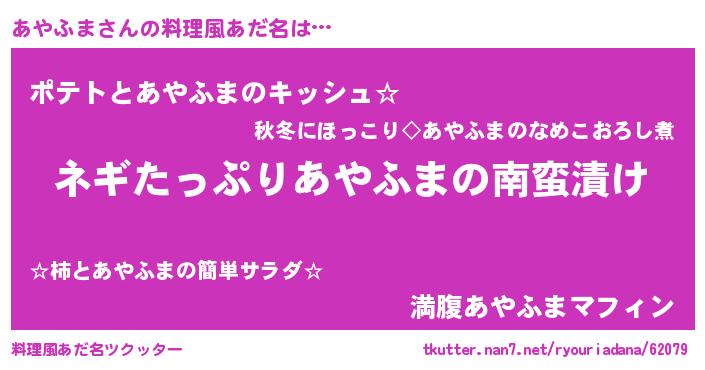 | ポケモン風あだ名 | 『アヤチュウ』『ヒアヤフマ』 |