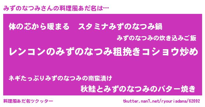 | 意味不明あだ名 | 『自称みずのなつみ』 |