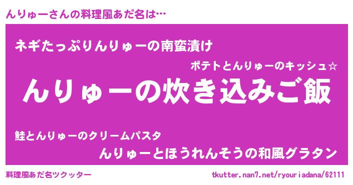 | 男性向けラノベタイトル風あだ名 | 『うちのんりゅーが世界を掌握している!』 |