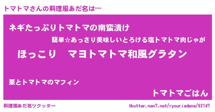 | 男性向けラノベタイトル風あだ名 | 『この素晴らしい世界にトマトマを!』 |